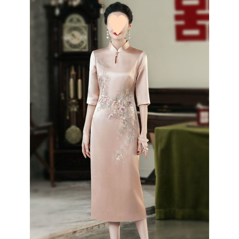 2025 春夏新作中国風宋錦ジャカード刺繍ミッドレングスレトロチャイナドレス女性の改良されたスリムフィット