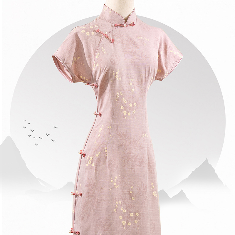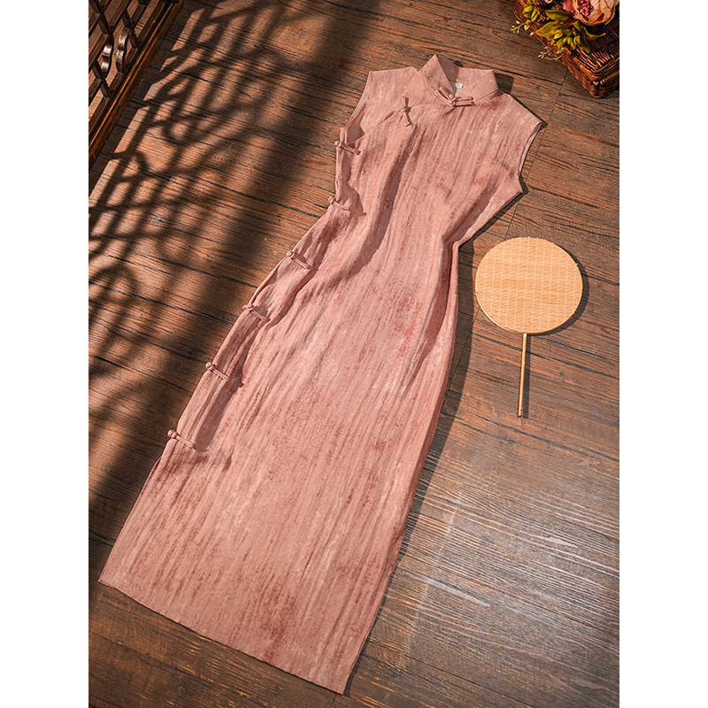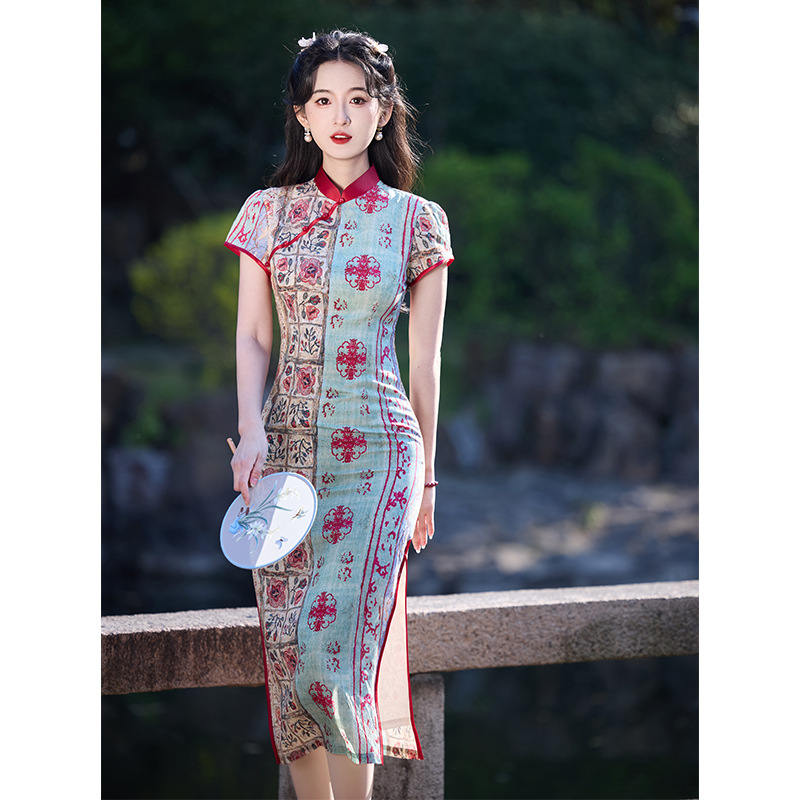 金枝玉葉雅韻チャイナドレス2025年新夏中国風ラミー麻プリント日常改良230151