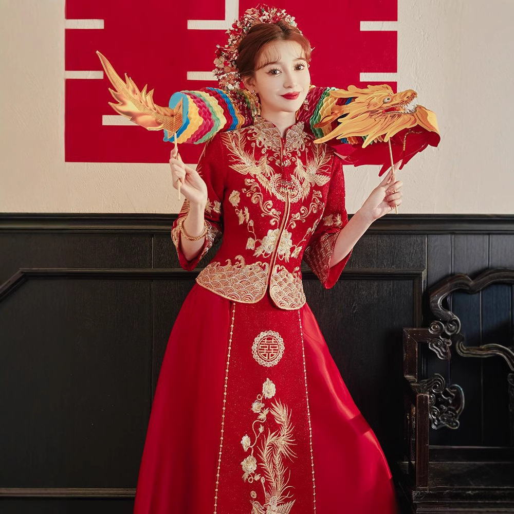秀イネ服花嫁2025新型中国式嫁入り服結婚ドレス新式外出服敬酒服秀着物修身