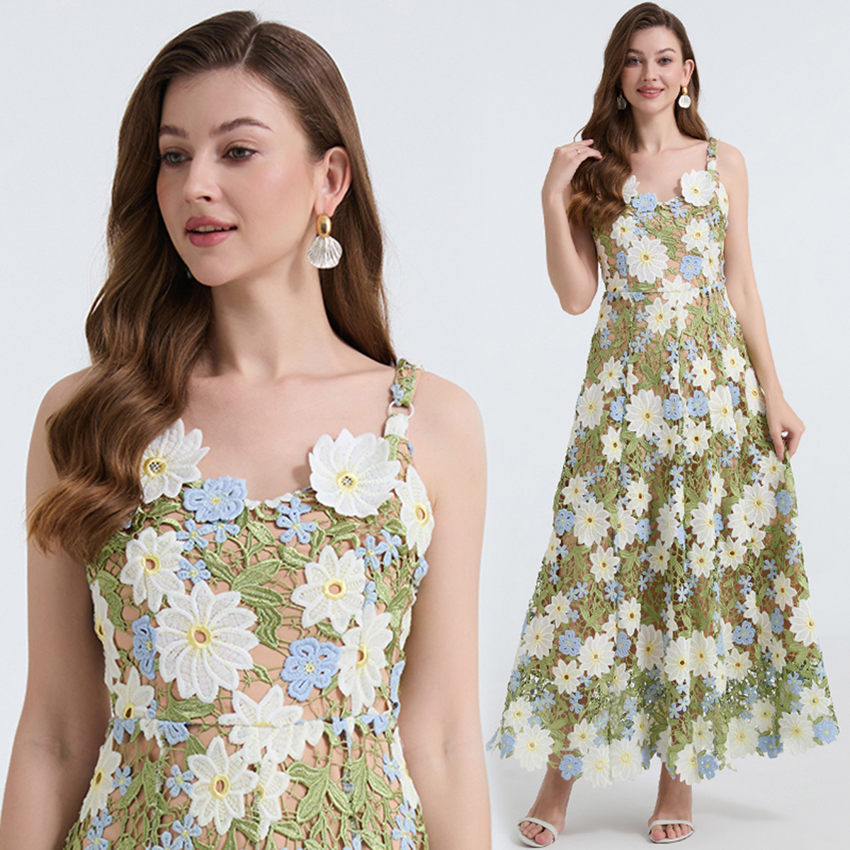 夏重工業2色水溶性レース刺繍サスペンダードレスセクシーな中空Aラインスカート