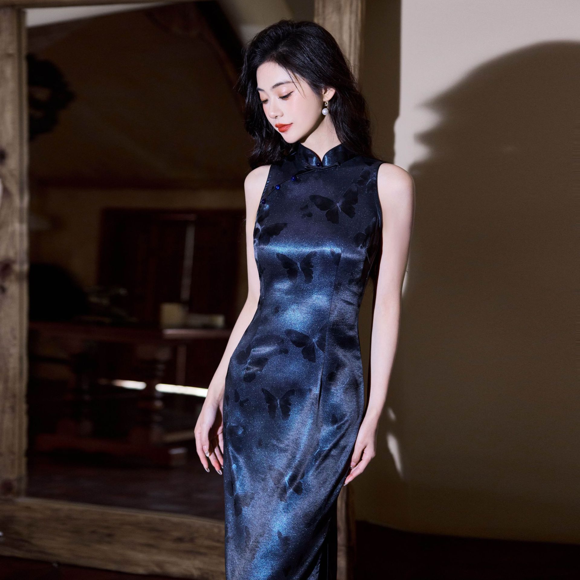 新中国式改良袖なしチャイナドレス2025新型優雅で美しい夏の長いタイプの若いタイプの少女は日常的に着ることができる