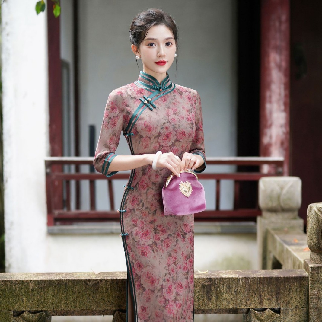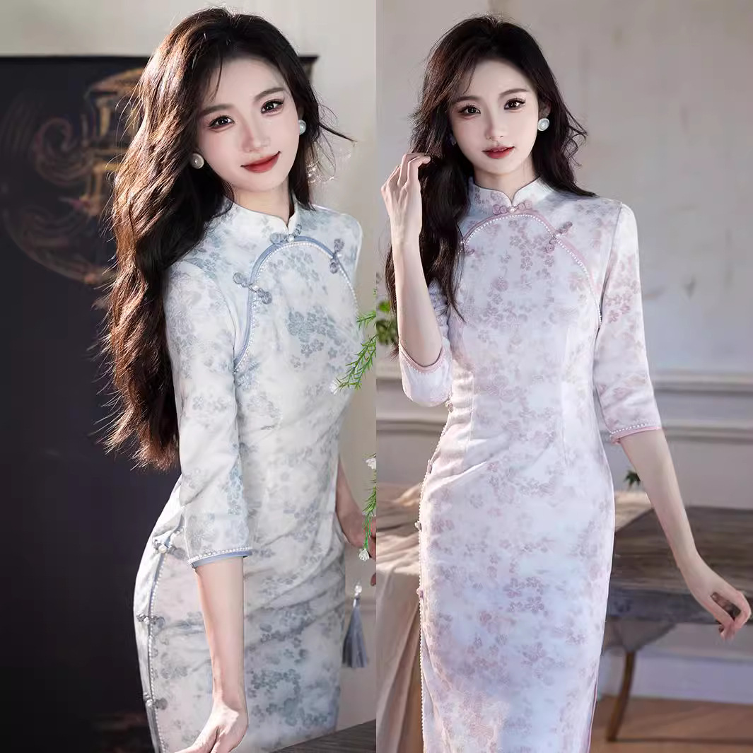 伝統的な上海チャイナドレス2023新型七分袖復古民国優雅日常改良ワンピース女性ロングタイプ