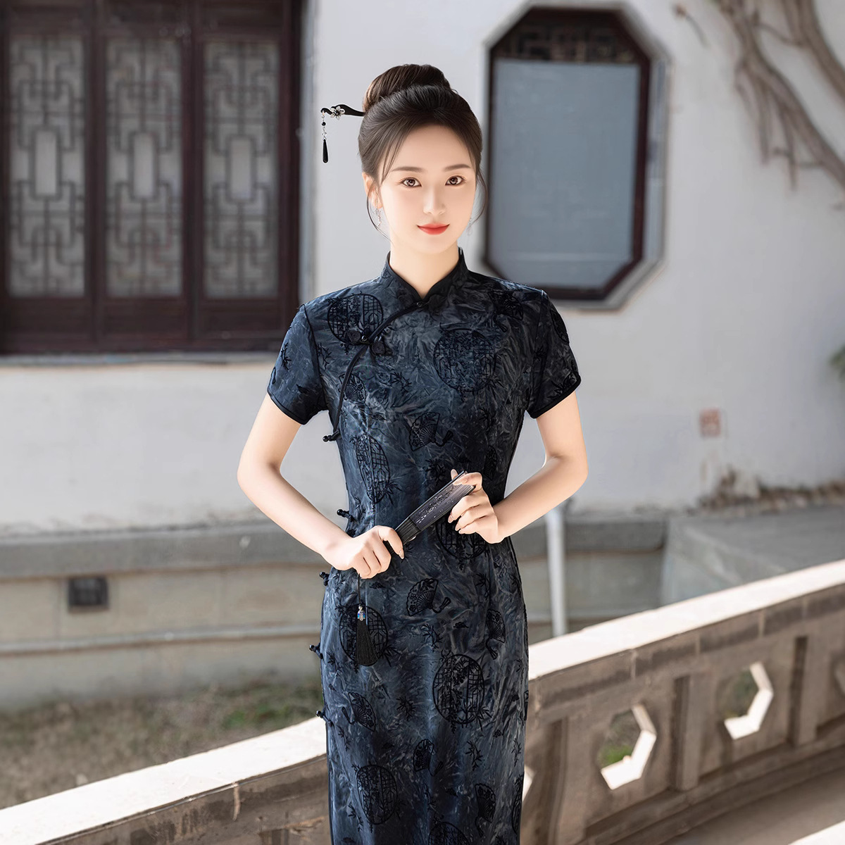 2023年夏の新型中国風修身レトロファッション優雅で気前の良いロングタイプの半袖チャイナドレス230330001