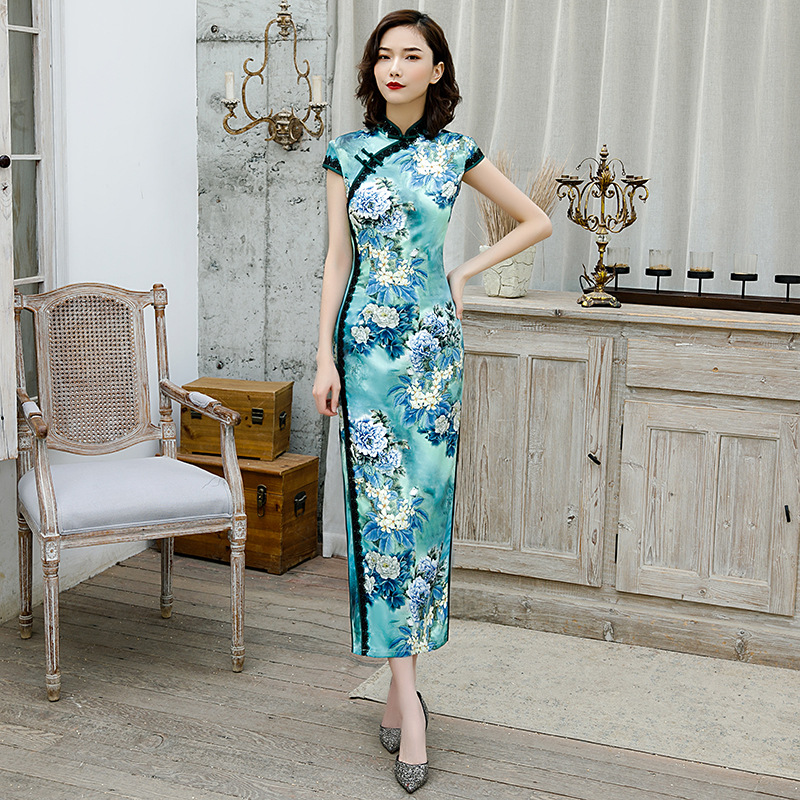 318古聖嬌旗袍ロング丈春夏改良版新式宴会普段着ママ服ワンピース女性改良版旗袍