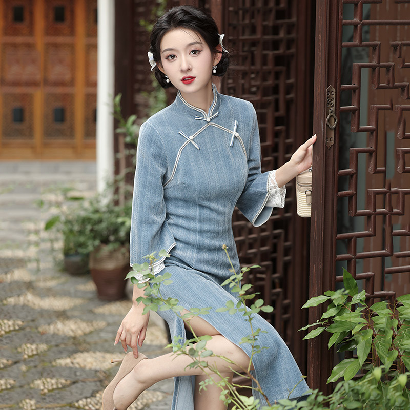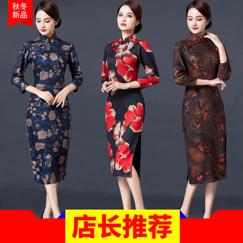 2022年秋冬新型中国風修身レトロファッション優雅で上品な長袖チャイナドレス919001
