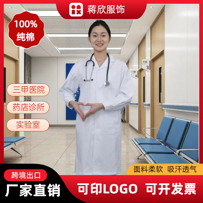 越境卸売純綿白衣医師服看護師服長袖半袖薬局作業服医学生白衣