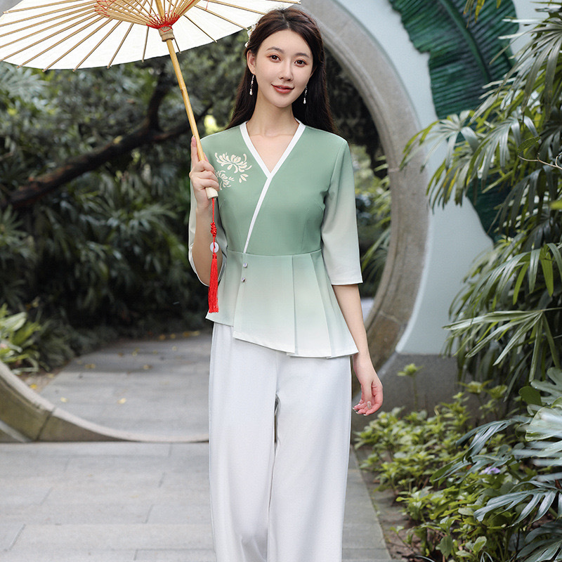 美容師作業服女性中国式足治療足浴技師ホテル従業員工衣JY-089半袖