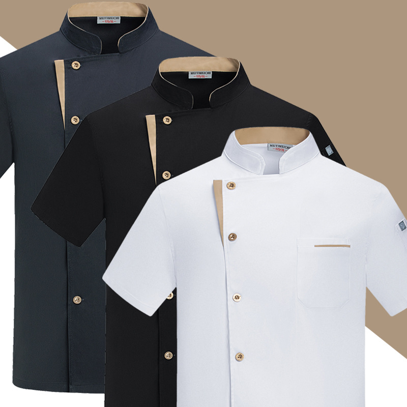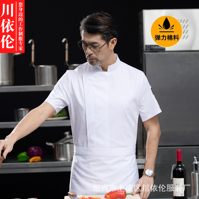 新商品弾力レストランシェフ作業服半袖男夏服通気性ホテルホテルキッチンシェフ服半袖