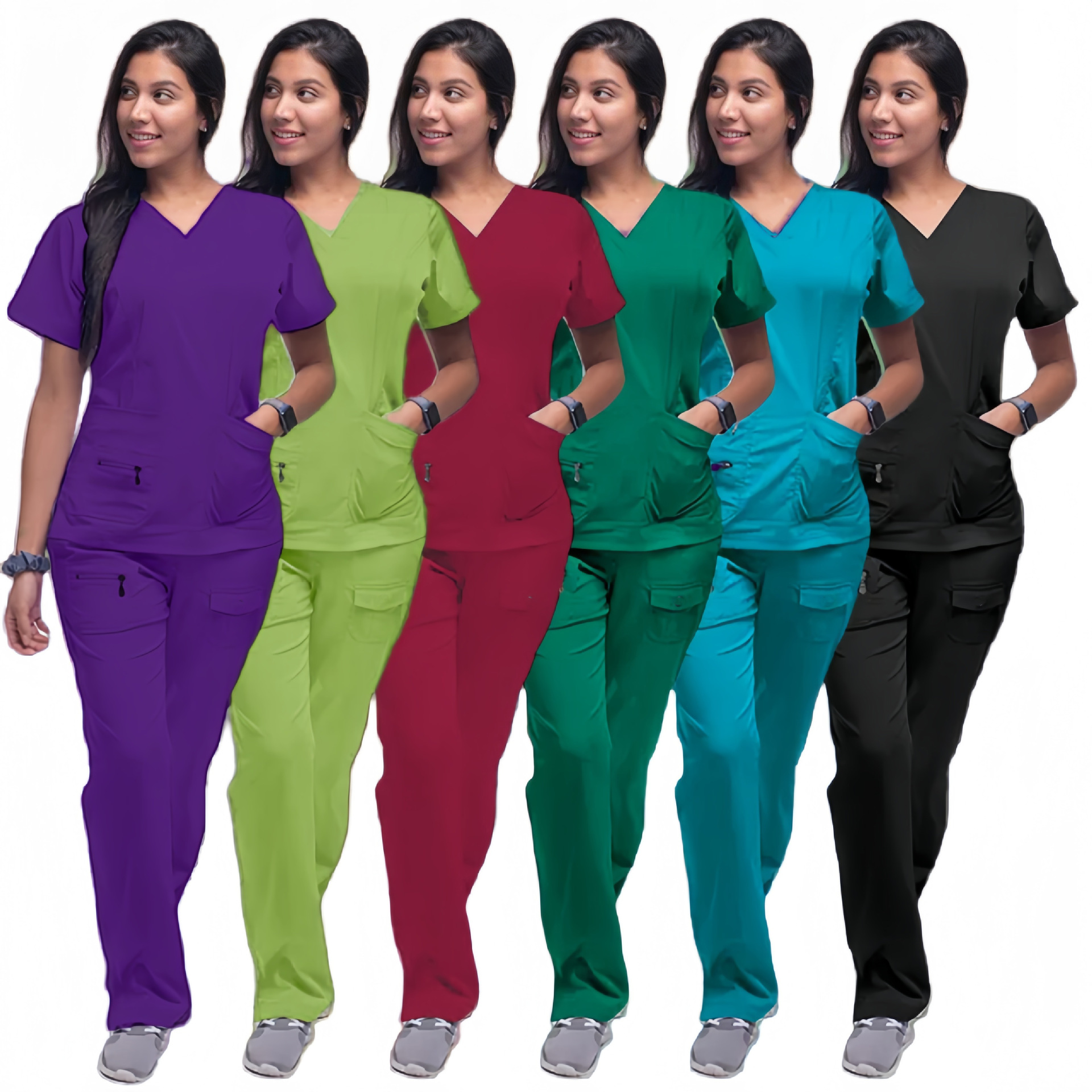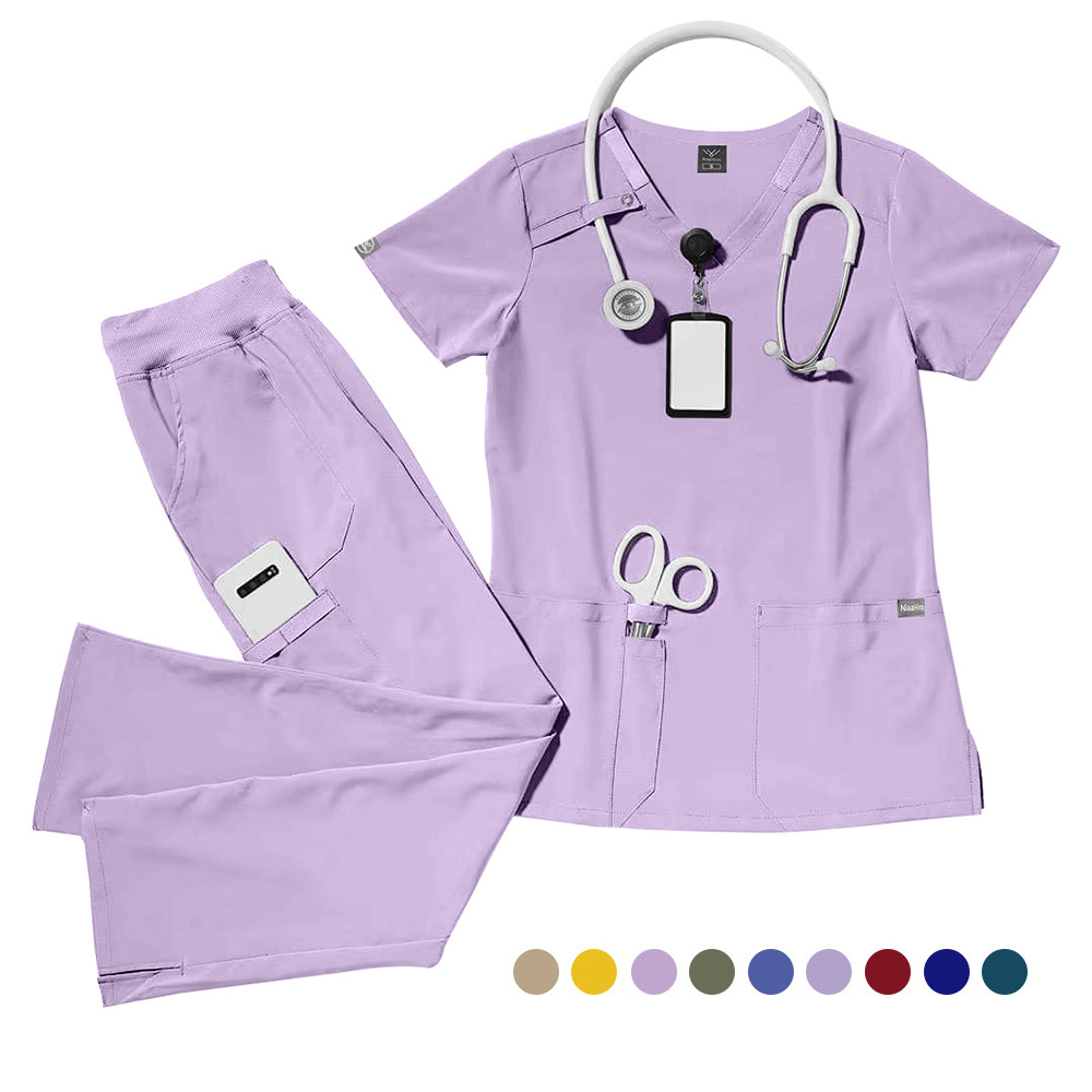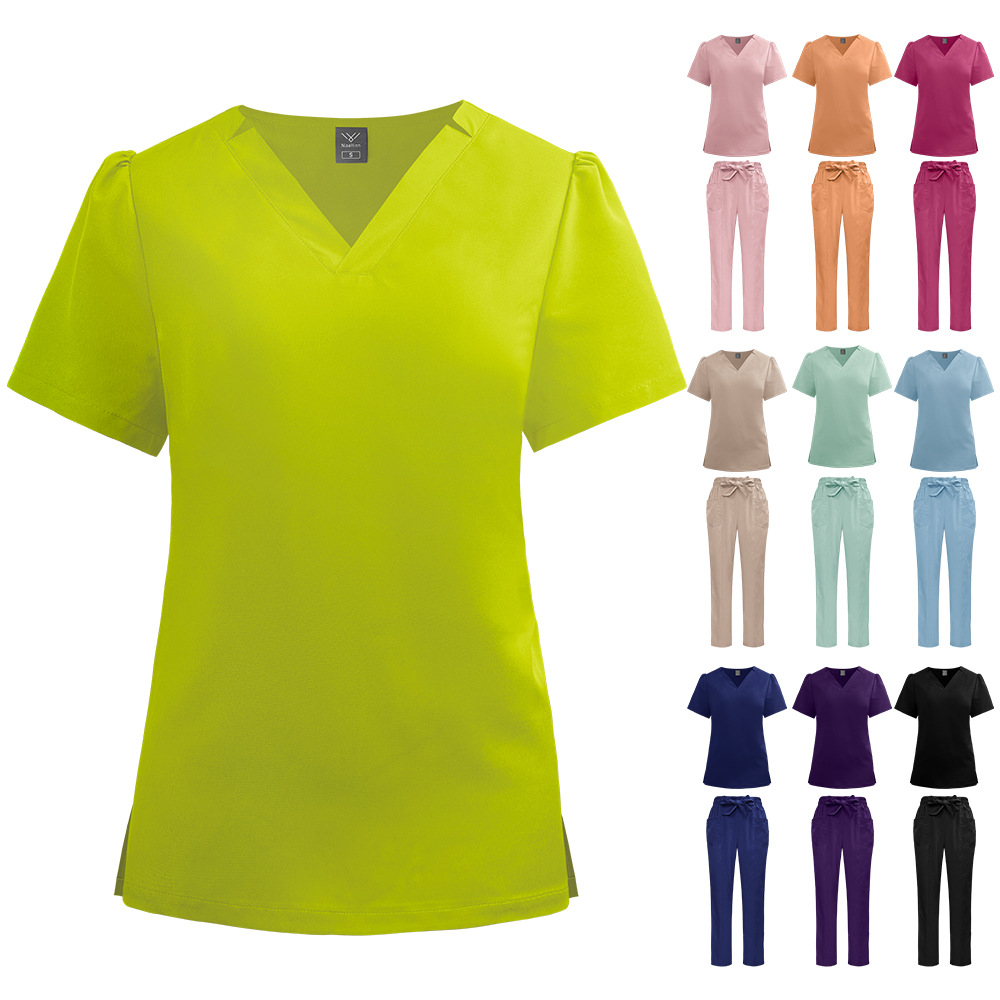 2025新商品の手洗い服12色vネックストレートズボンの薄い夏のカジュアルで快適な看護師服セットの速売通
