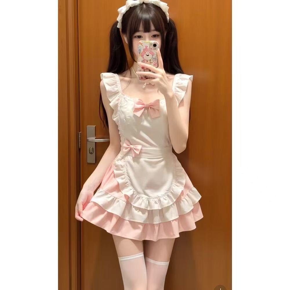 甘くてかわいい女の子cosメイド服ドレスショートスカートチュチュスカートケーキスカートリボンエプロンスーツ女性用