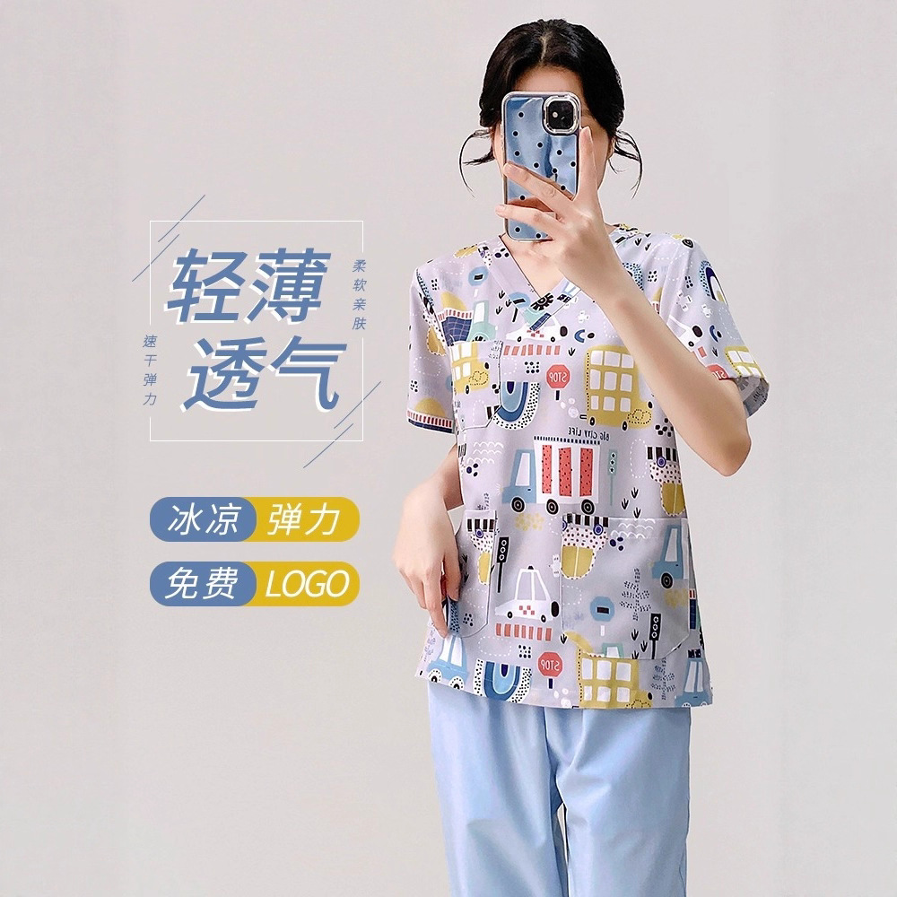 弹力卡通印花洗手衣宠物诊所儿童医院美容院养老院月子中心工作服
