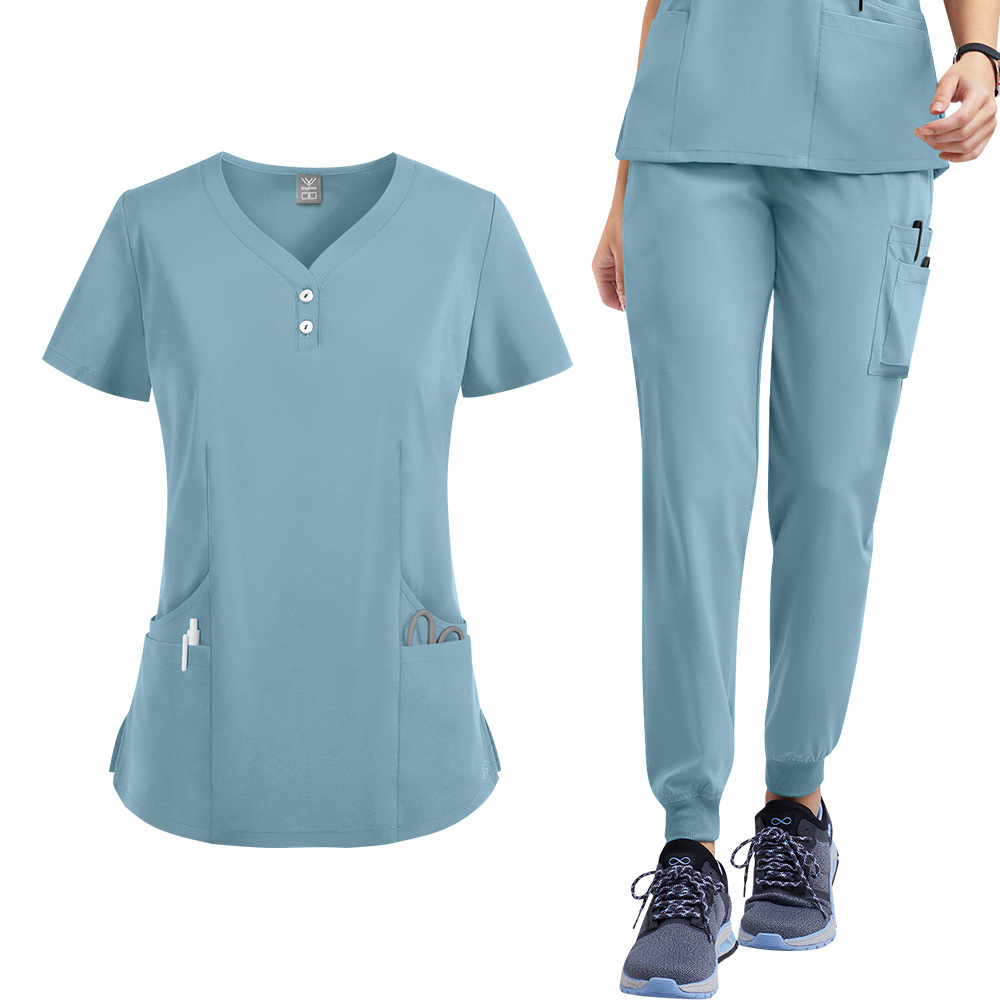 2023 # クロスボーダー Amazon TC コットン新作半袖 V ネックナースケアユニフォーム作業服男性と女性のトップス