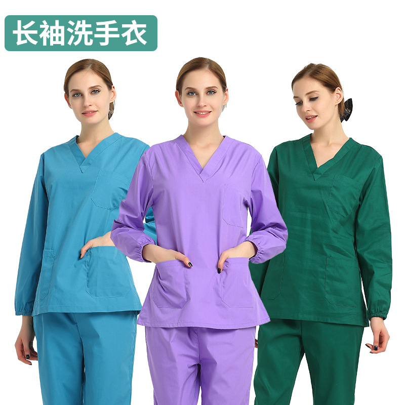 伸縮性速乾手洗い手術着、女性用ドクターハンドブラッシングスーツ、男性用口腔歯科看護師作業服スーツ