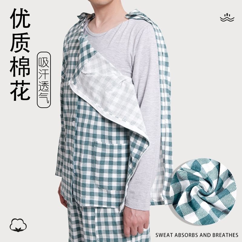 夏用の着脱が簡単な男女兼用綿病院服、介護服、寝たきり麻痺患者、骨折高齢者用パジャマ