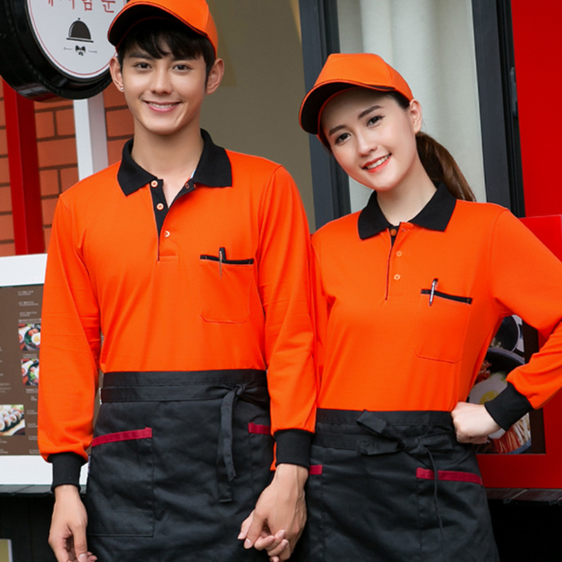 ウェイター作業服長袖秋冬快西レストランレストランレストランホテル鍋ミルクティー工装男女tシャツカスタム