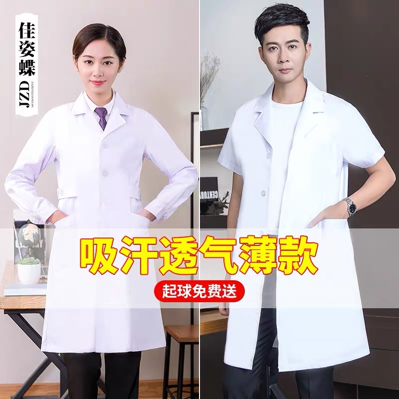 白衣長袖薄手スリム通気性半袖ナース服春秋薬局口腔男女医師作業服