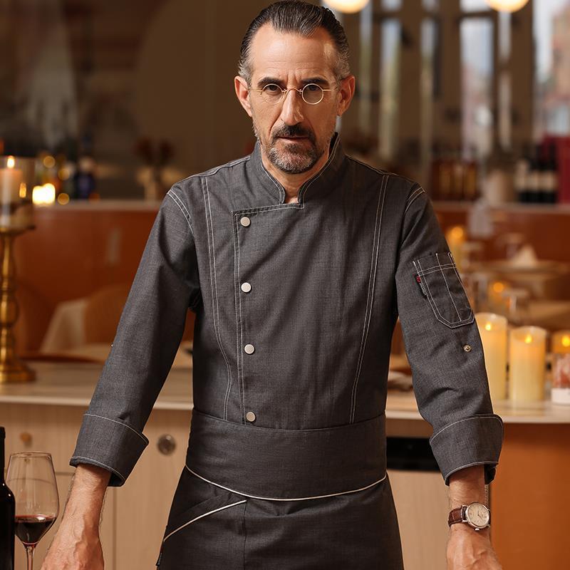 純色の飲食の後で台所の料理人の作業服の男性の長袖のレストランのホテルは食堂の服装の秋冬の食堂の食事を焼きます。