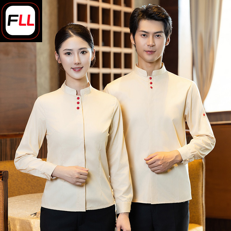 中国式飲食サービスマン作業服長袖茶楼中レストラン従業員制服春秋服男女