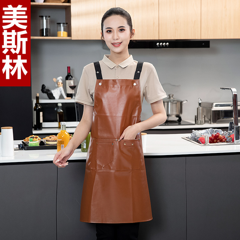 Puソフトレザーエプロン飲食防水防油レストラン水産キッチン鍋ミルクティーネイルショップ作業服女性