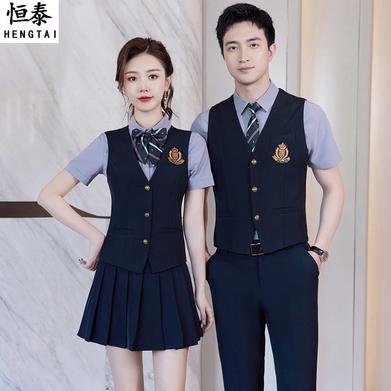 男女ホテル工装制服飲食サービス員職業馬甲セット洋気学院風幼師作業服夏