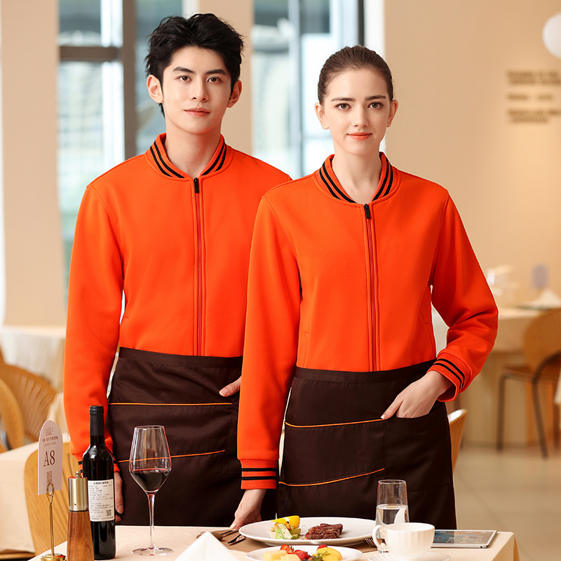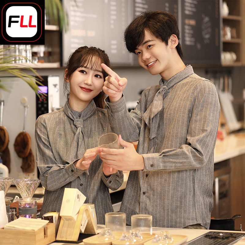 ウェイター作業服飲食ミルクティー店ケーキ火鍋店長袖セット男女秋冬簡潔ライン
