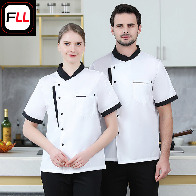 夏の料理人の作業服の男性の薄いタイプの通気性のホテルの飲食店の台所は工衣の半袖の食堂を焼きます。