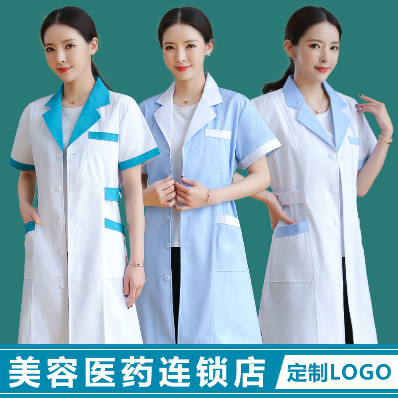 薬局作業服女性白衣長袖医師服看護師半袖薬局美容病院専用服装夏