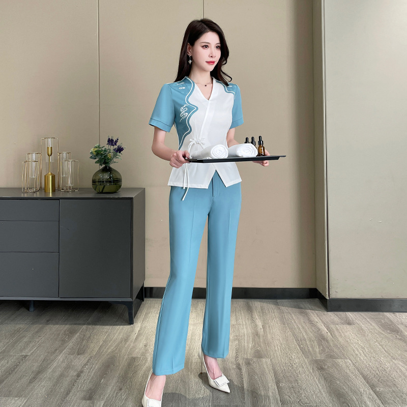 足治療作業服女性ホテルサウナspa作業服セット夏美容院足浴技術師服女装