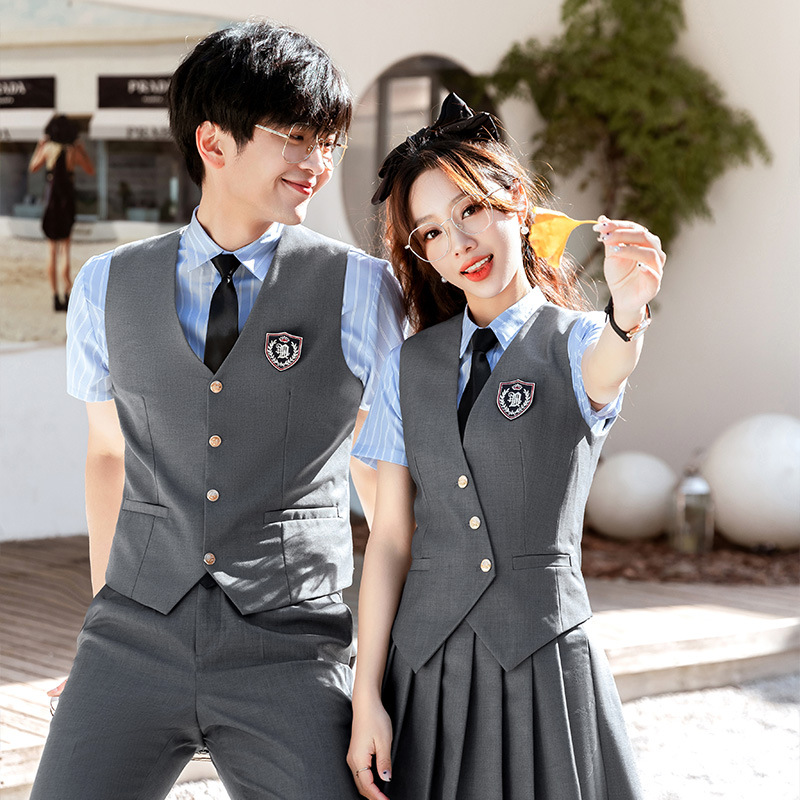 夏jk学院風幼師職業制服馬甲セット飲食ktvホテルサービスマン作業服男女