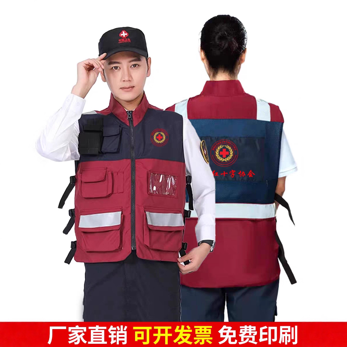 中国衛生男女兼用黒赤ジャケット緊急救助用ベスト半袖レスキューロゴ入り