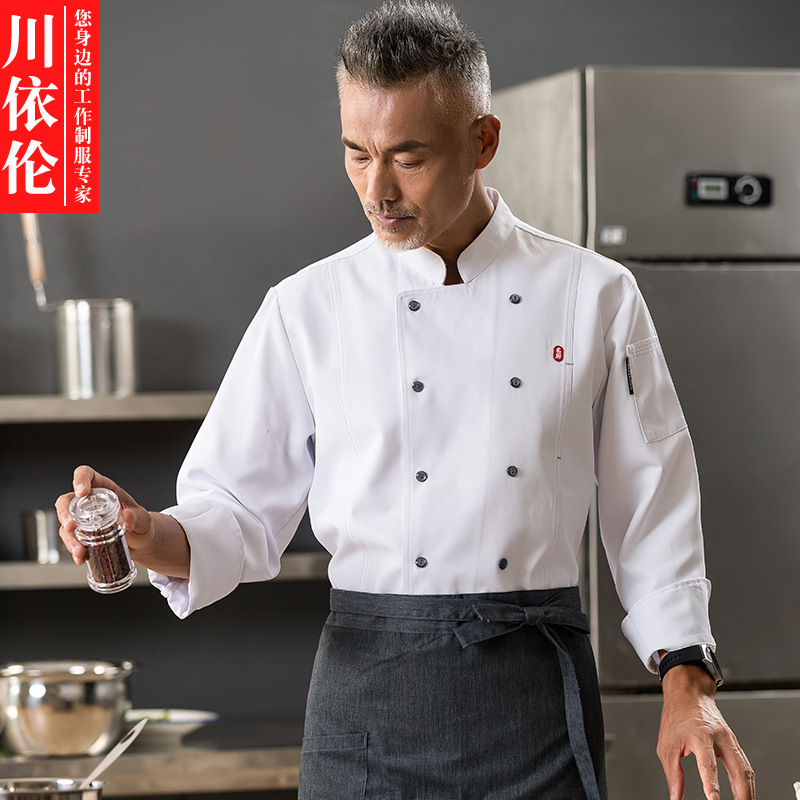 高級レストラン料理人作業服長袖秋冬服男性新型レストランホテルスイーツ店キッチン料理人服