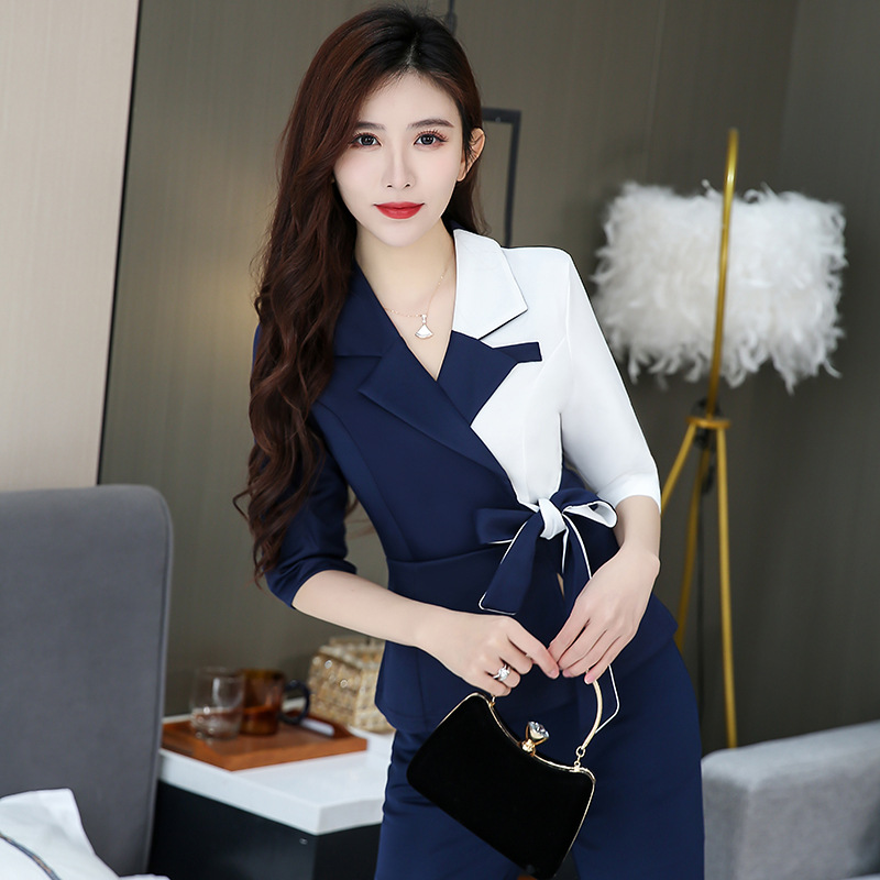 学院風シャツ足治療足浴技師作業服セット新型百タックスカート2点セットKTV制服