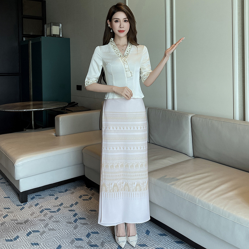 美容師SPA作業服雲南西双版納ダイ族衣装水の祭りエスニックスタイルスーツ782