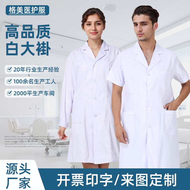 白衣男女医師看護師薬局実験服長半袖聖雪蘭生地薄金源メーカー卸売り