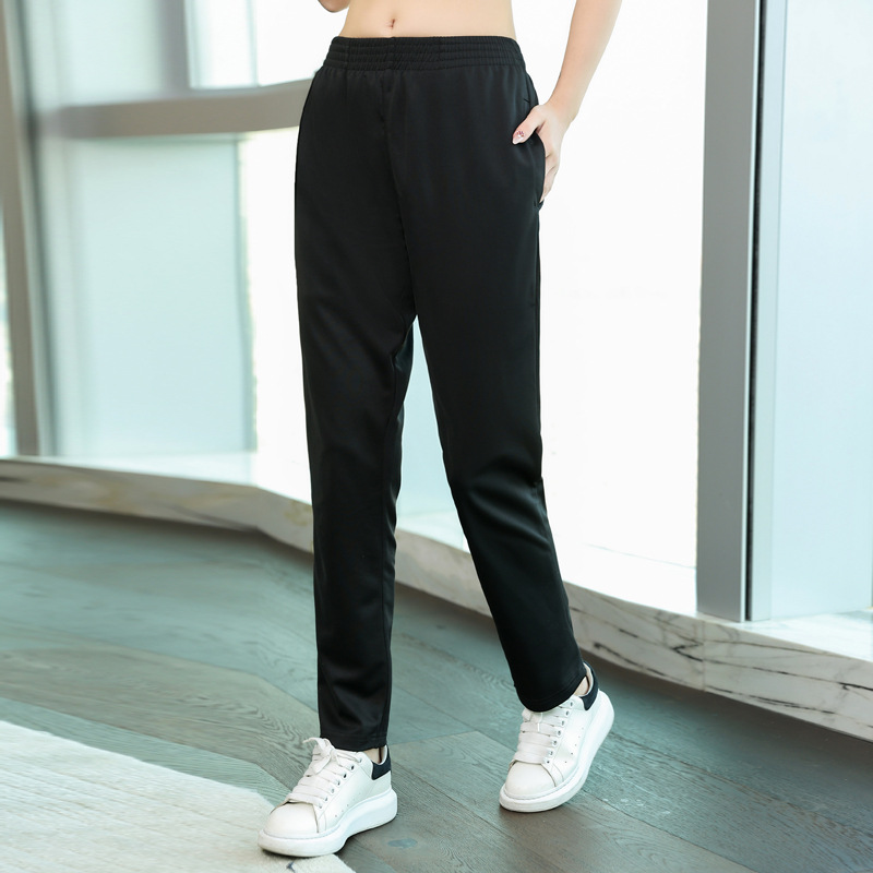 ホテルの全緩み弾性ズボンの直筒の版型の男女の同項の出勤する仕事のズボンの快適な肌の黒色の金