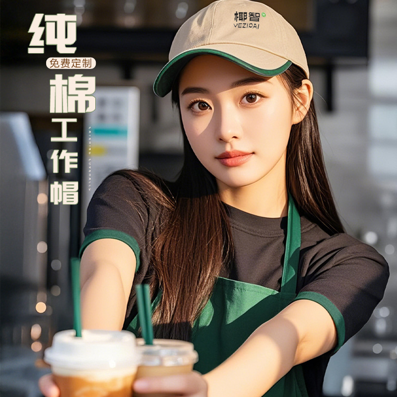 プリント刺繍ロゴ入り純綿ひさしキャップ野球帽ケータリングウェイターチームミルクティーウェイター作業帽