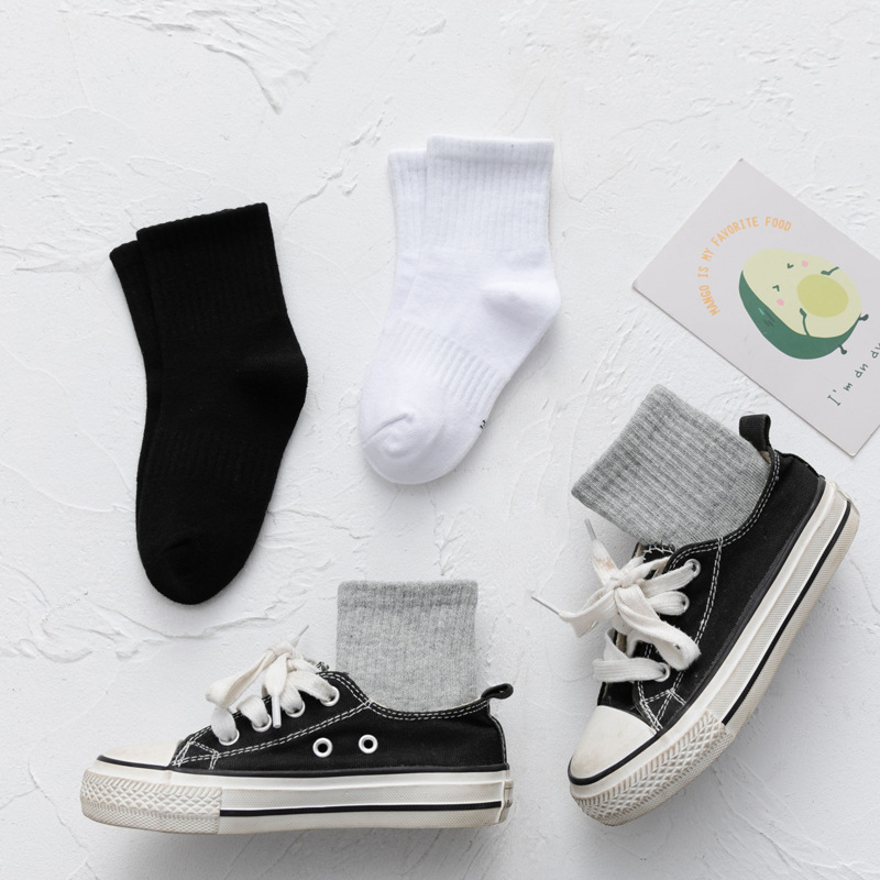 子供用靴下秋中筒純色ins男の子赤ちゃん綿靴下薄いタイプ独立包装メーカー子供用靴下