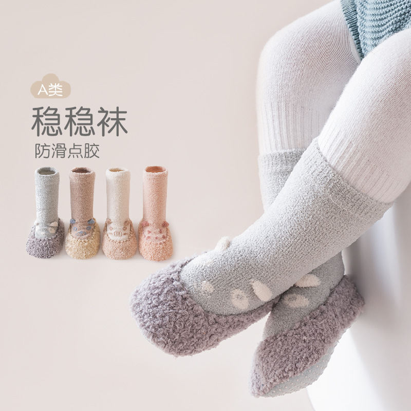 ベビ子供靴下秋子供靴下中筒点ゴム赤ちゃん靴下赤ちゃん耐摩耗性滑り止め学歩靴下