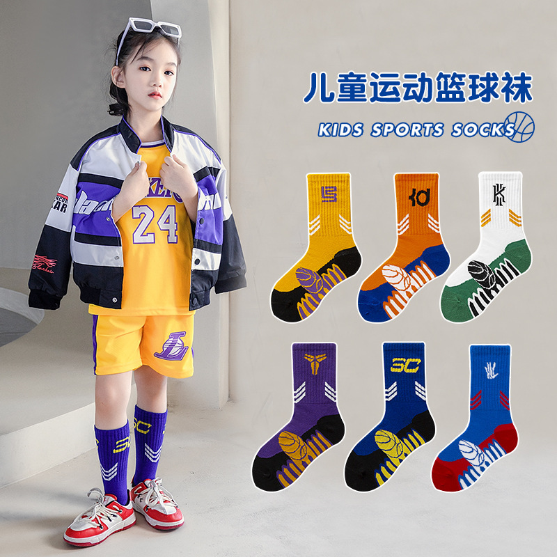 新しいサイズの子供のスポーツの靴下のバスケットボールの精練の綿のサッカーの筒のデジタルの歳の学生の中学校のランニングの靴下