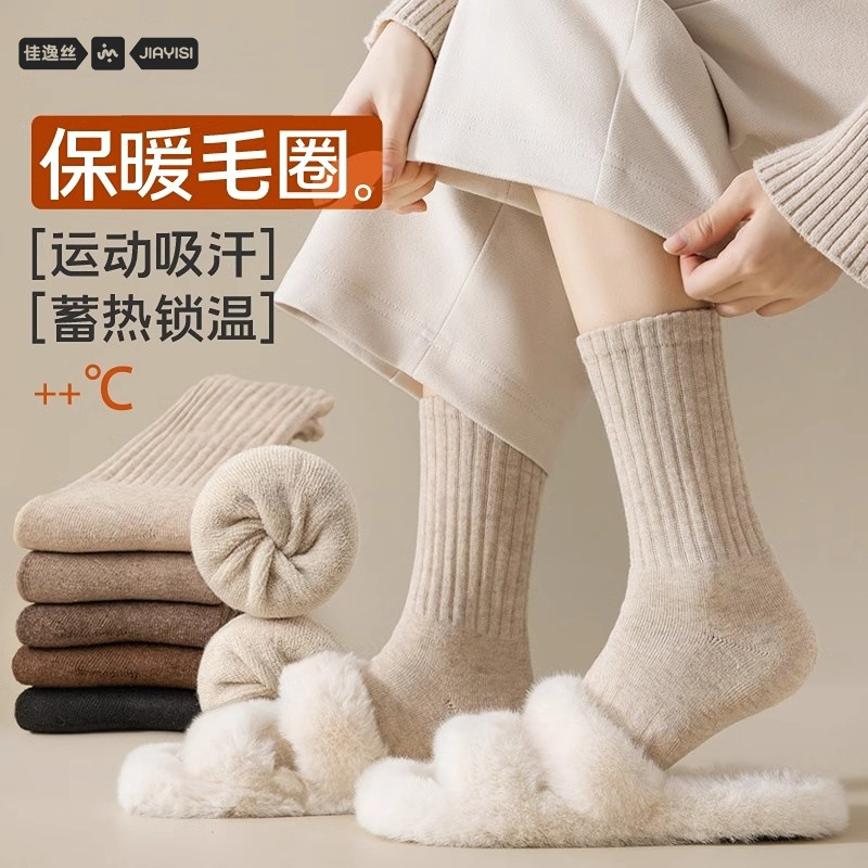 冬のカシミヤ靴下とベルベットの厚い中筒靴下の女性秋冬保温月子靴下の床靴下のウールの厚い靴下