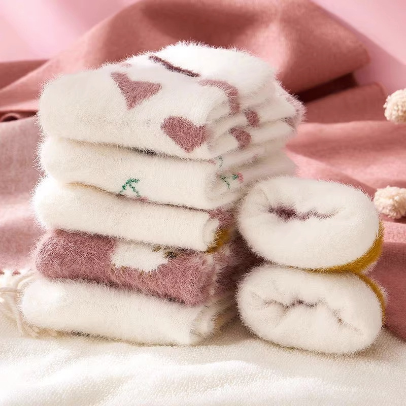 2024秋冬の新型愛は毛を落とさないサンゴの絨毛の靴下の中で筒の半分の絨毛の家の睡眠の床の靴下の卸売りをします。