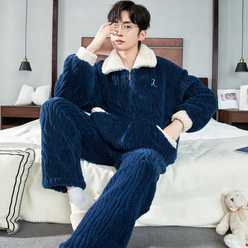 パジャマの男性の秋冬のサンゴの毛は厚いサイズの青少年の冬のフランネルの家の服を厚くしてスーツを着ることができます。