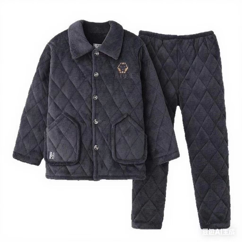 冬の三階に綿を挟んだ男性のパジャマサンゴのベルベットが厚くて暖かいので、フランネルの家庭服セットを着ることができます