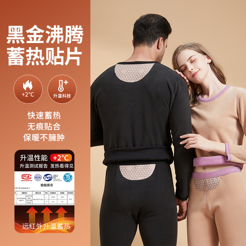 黒金シール保温スーツ男性カップル秋冬保温下着にベルベットをつけて秋衣秋ズボンを厚くする