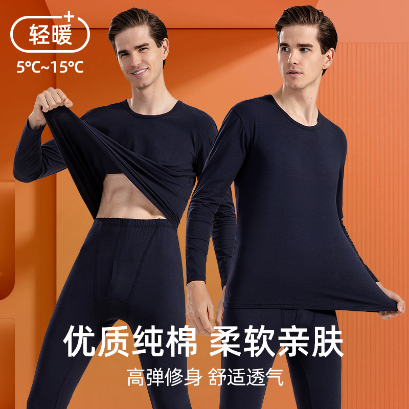 男性用純綿保温下着秋衣秋ズボンセット男性用薄手スリム綿100% セーター秋冬2シーズン