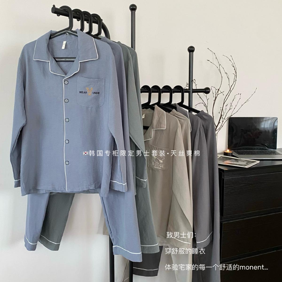 秋冬の新型韓国版男性パジャマ天糸爽綿長袖長ズボンゆったりとしたカジュアルな襟付きホームウェア