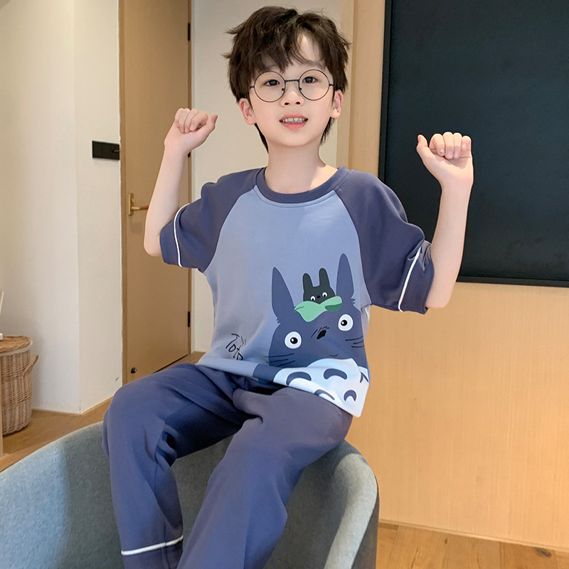 純綿男児パジャマ子供春夏薄手半袖長ズボンカバー男の子中大童中学生ホームウェア