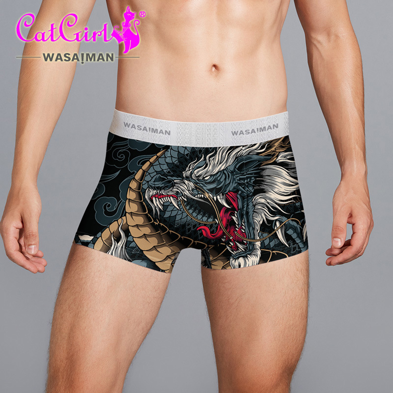 男性下着男覇気龍紋下着個性金龍模様青年綿質平角ズボン通気四角ズボン