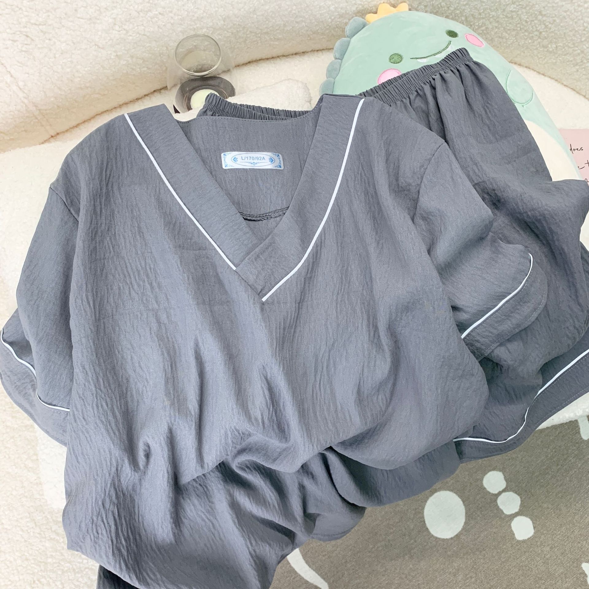 丸襟パジャマ男夏高校生薄手春秋大サイズ200斤青少年は長袖の家庭服を着ることができる