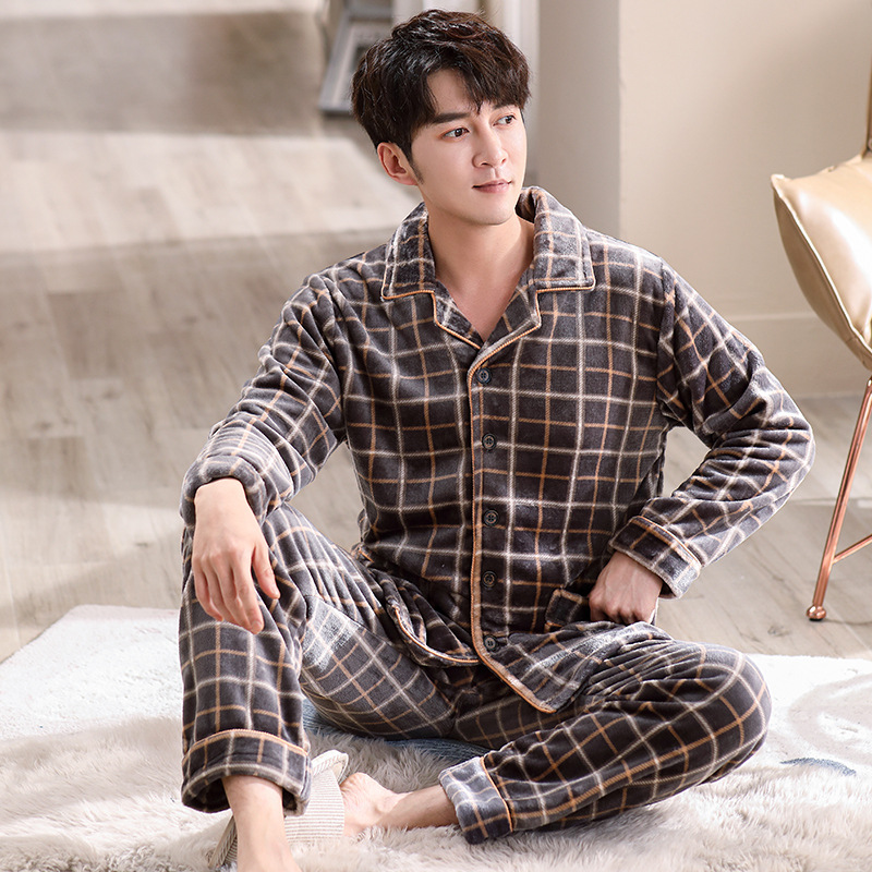 パジャマ男性冬のサンゴの毛が厚くて暖かい男性秋冬フランネル男性の大きいサイズの冬の家庭服